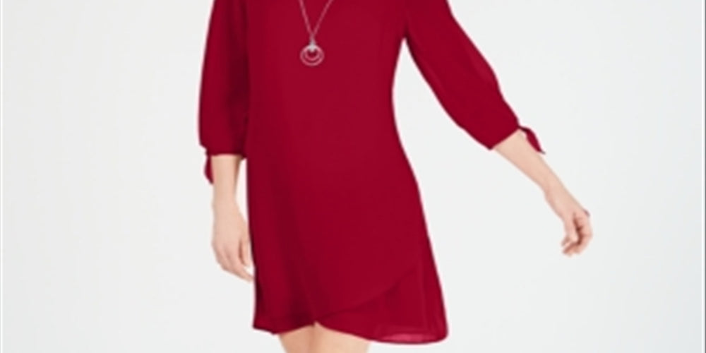 JM Collection Women's Tie Sleeve Necklace Dress Red Size Petite S