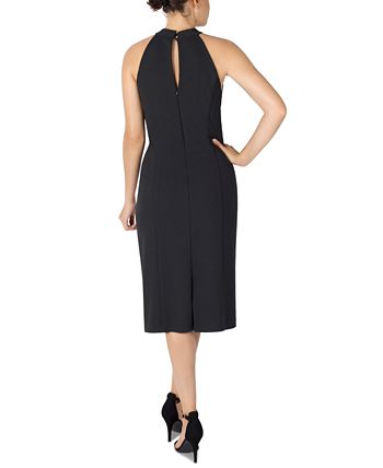 Lined|Imported|Back zipper closure with keyhole and button closures at back neck|Keyhole at front neckline|Twisted halter neckline; sheath silhouette|Connect with a stylist & get free expert advice online or in stores for your wardrobe| home & more. Book Now