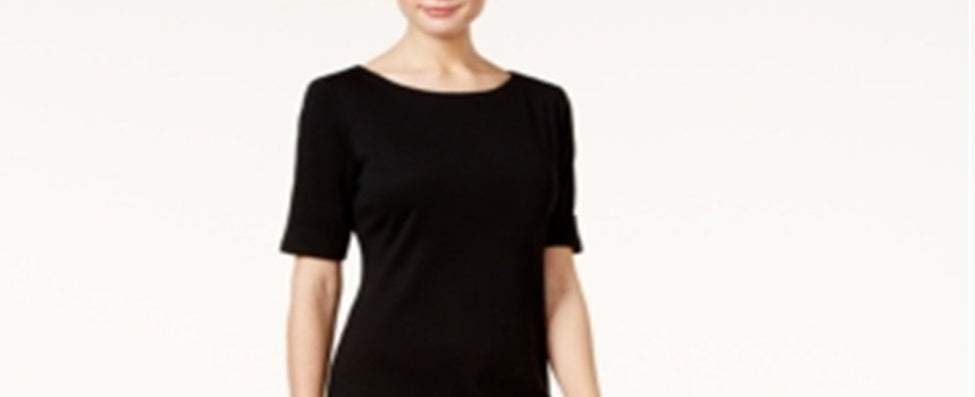 Karen Scott Women's Cotton Elbow Sleeve Dress Black Size -Petite S/M