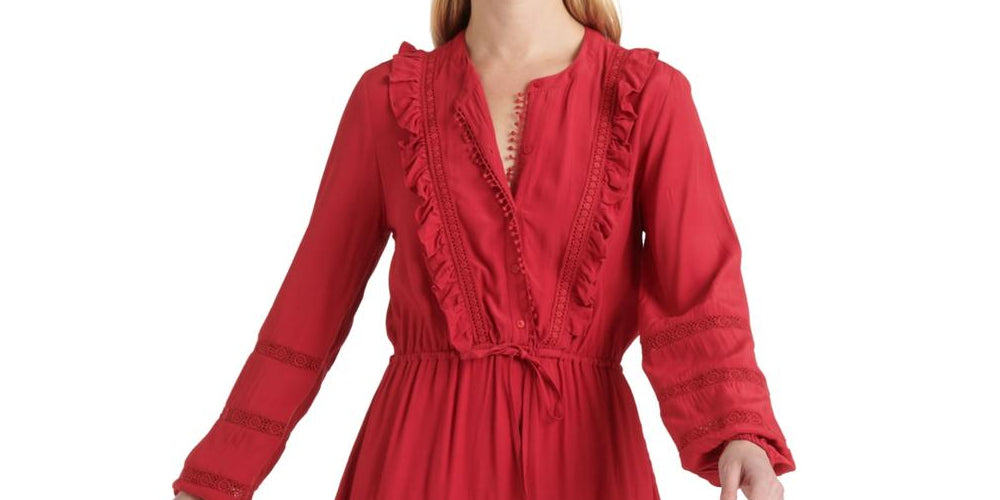 womens mini dress|picot trim|ruffled party