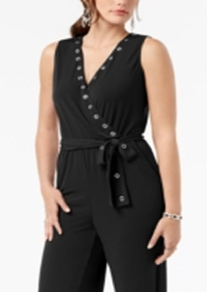 NY Collection Women's Belted Grommet Jumpsuit Black Size Petite Small