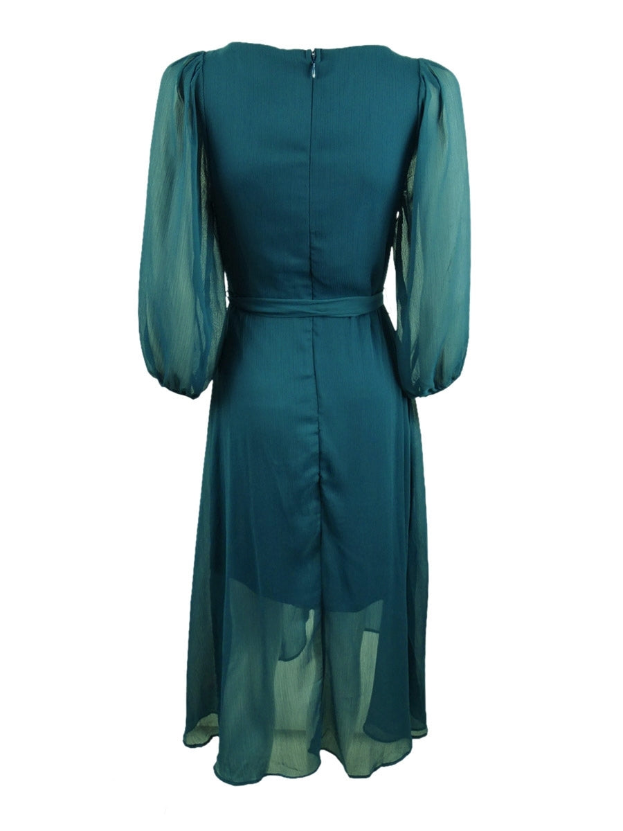 NY Collection Women's Crinkle Chiffon Faux Wrap Dress Blue Size Petite Large