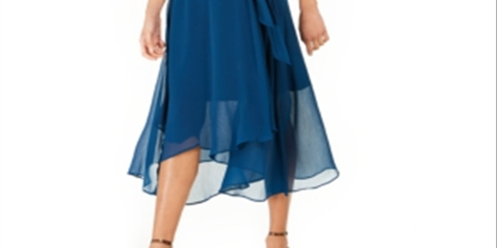 NY Collection Women's Crinkle Chiffon Faux Wrap Dress Blue Size Petite XL