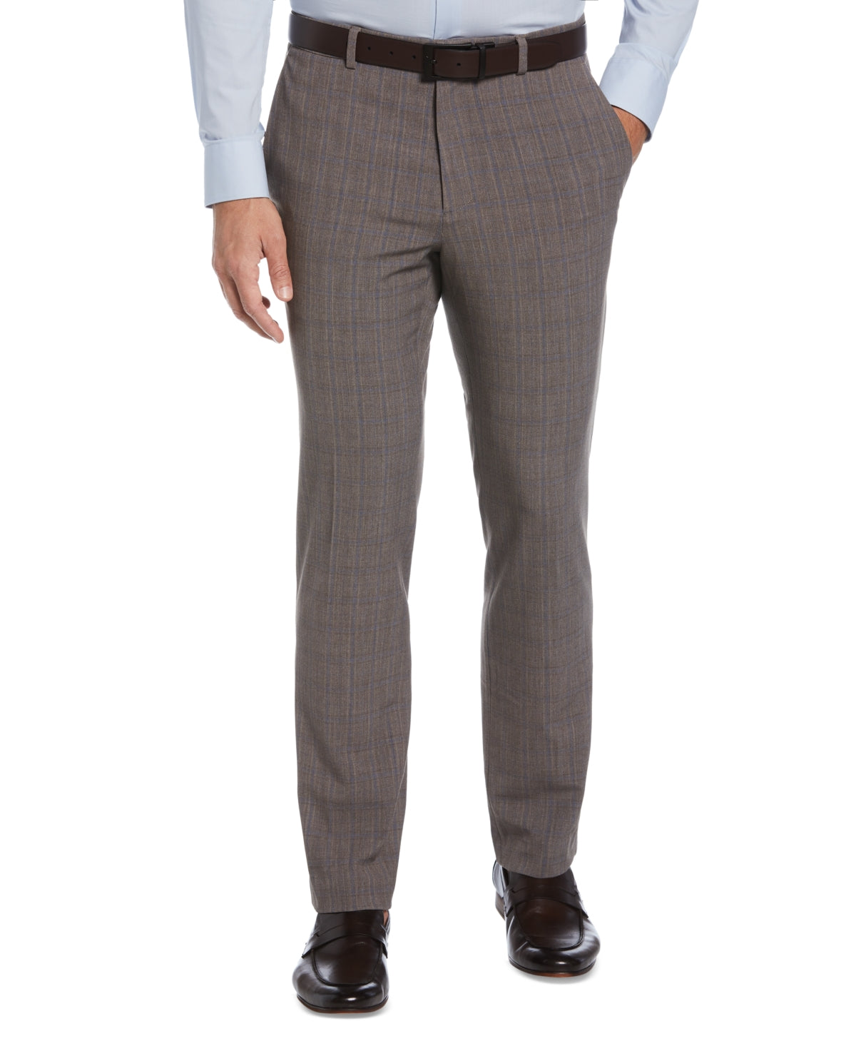 Build out your next formal look with these dress pants from Perry Ellis Portfolio| which expertly balance a Slim Fit design with stretch-fabric construction to give you a look that's trim and roomy in tandem. | Slim fit | Zip fly with button closure| Belt loops| Side pockets| Flat front