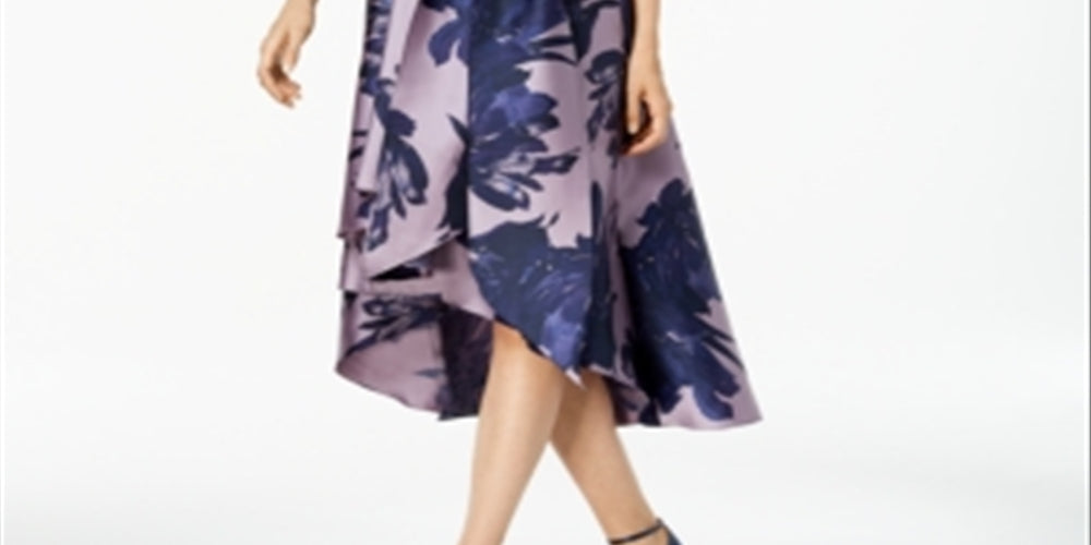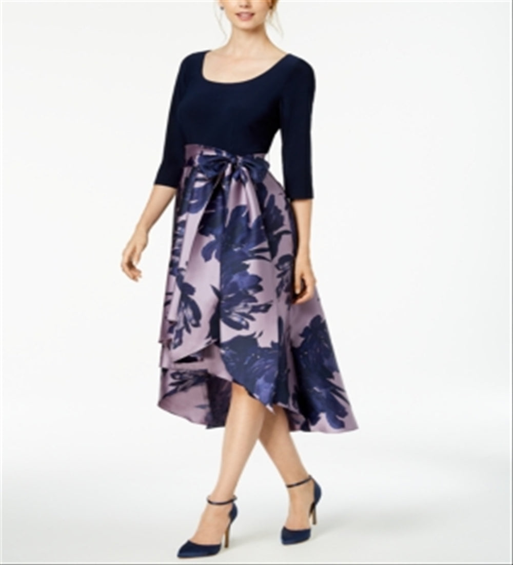 R & M Richards Women's Floral Scoop Neck Below the Knee Party Hi Lo Dress Blue Size 14