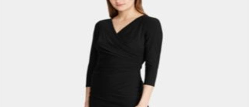 Ralph Lauren Women's 3/4 Sleeve Runched Jersey Dress Black Size 0