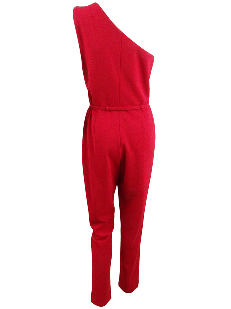 Ralph Lauren Women's Velvet Jersey One Shoulder Jumpsuit Red Size 6
