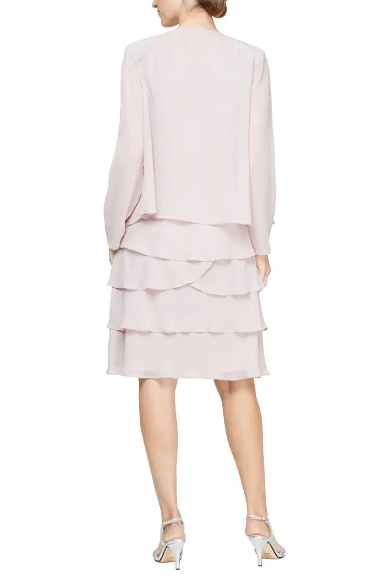 SL Fashions Women's 2 Pc Open Front Jacket & Tiered Fit & Flare Dress White Size 18