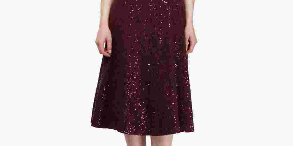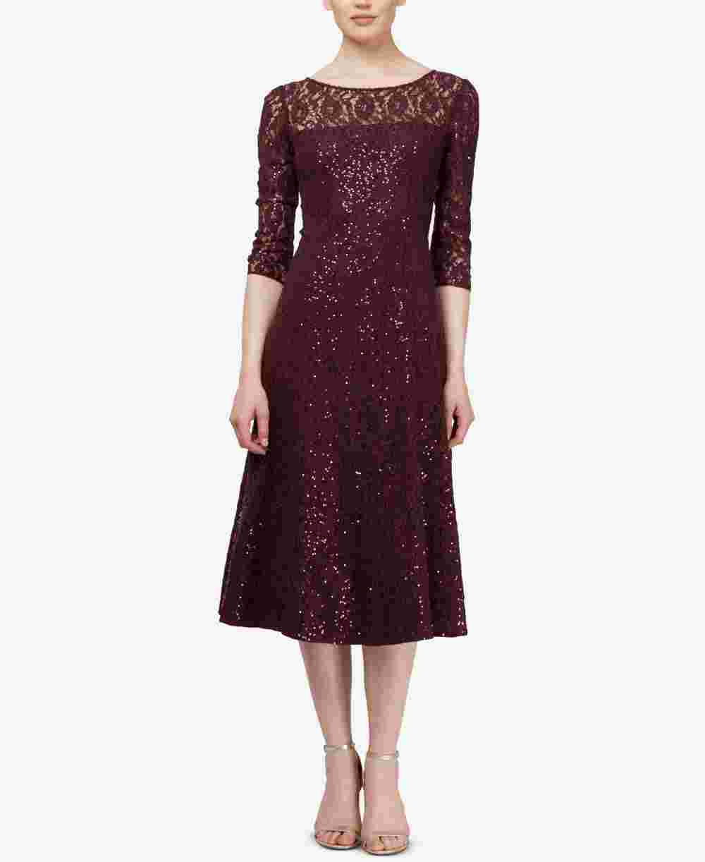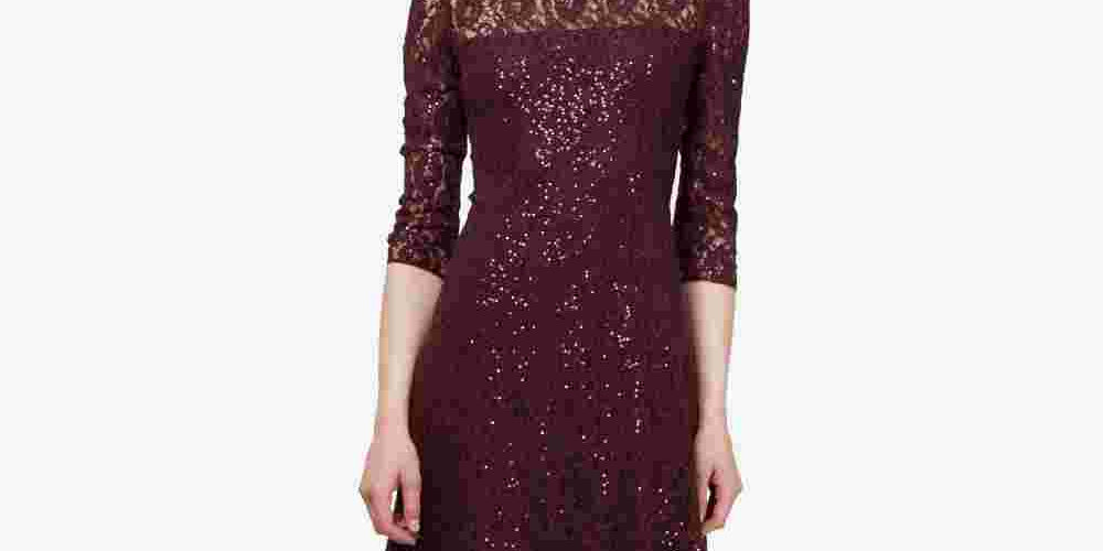 SL Fashions Women's 3/4 Sleeve Sequin Lace Dress Burgundy Size 14