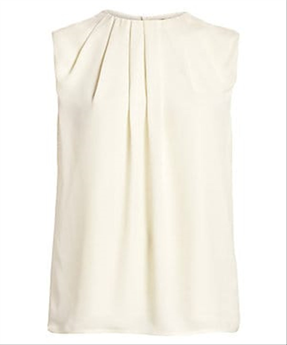 St| John Collection satin silk georgette shell with pleated drape detail at the neckline| Crew neckline| Sleeveless| Relaxed silhouette| Straight hem| Back zip