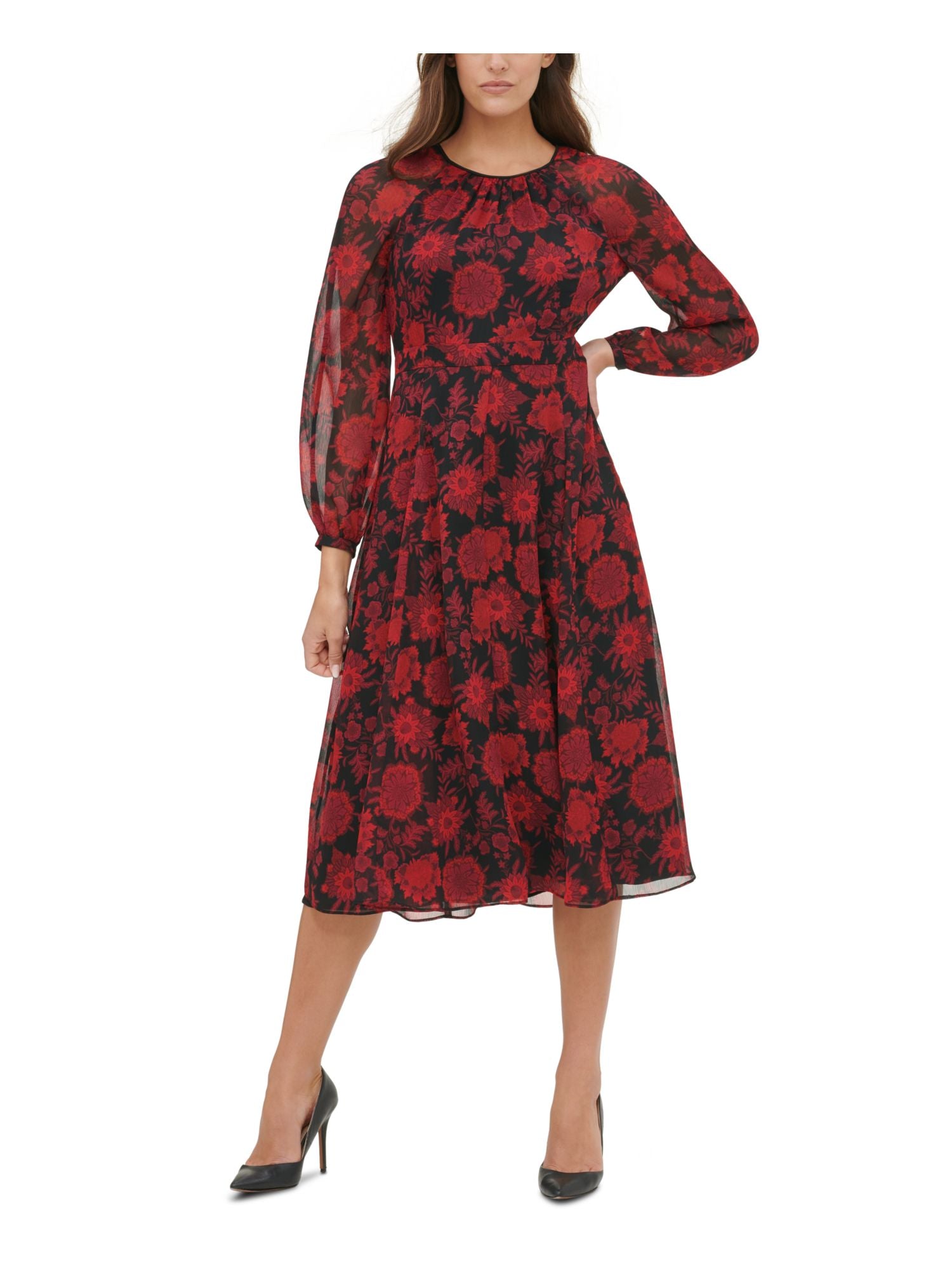 Tommy Hilfiger Women's Floral Chiffon MIDI Dress Black Size 2