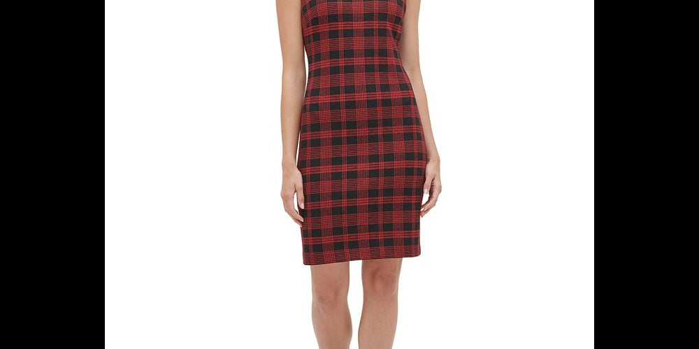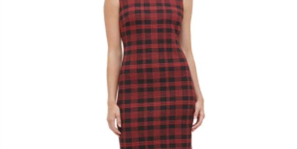 Tommy Hilfiger Women's Knit Plaid Sheath Dress -Red- Size 6