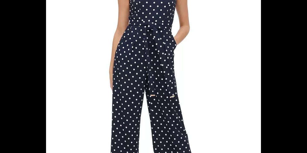 Tommy Hilfiger Women's Polka Dot Tie Waist Jumpsuit Blue Size 14