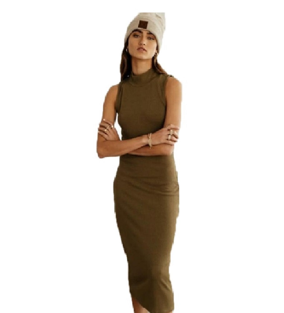 Bodycon MIDI Dress High Neck Sleeveless Ribbed Stretch Knit Material 95% Polyester| 5% Spandex Machine Wash Cold|5 Medium (6-8) 32-35 46|5 Large (10-12) 34-38 47 X-Large (14-16) 36-40 47|5 Our online merchandise team measures each size by hand| For more specific information on the product