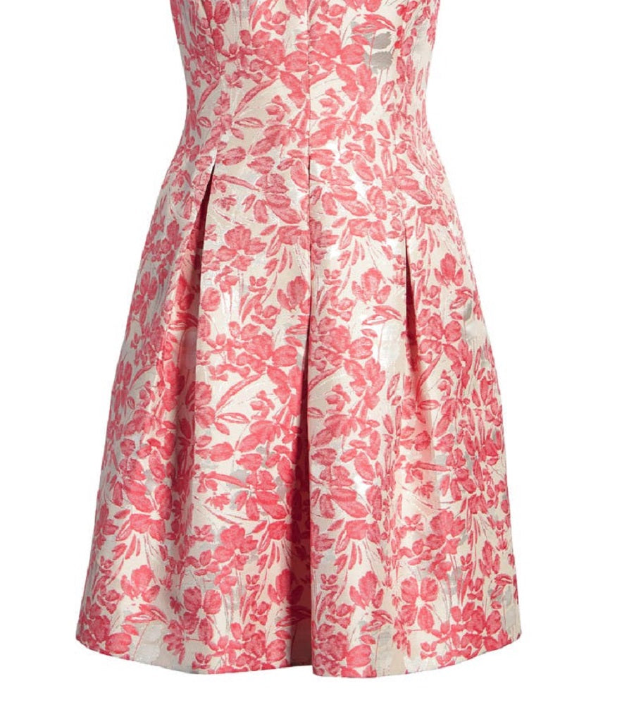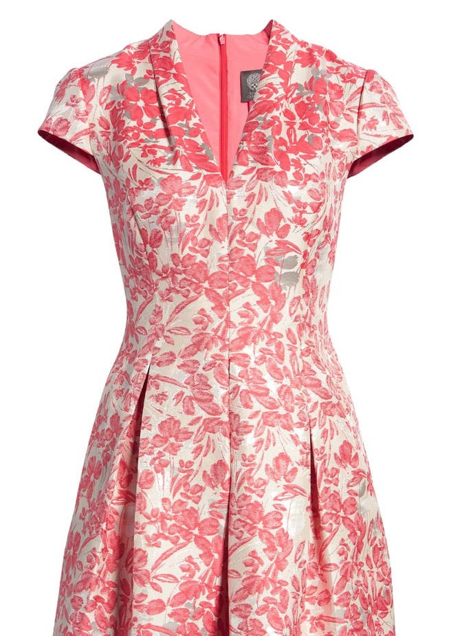 Vince Camuto Women's Floral Metallic Jacquard Fit & Flare Dress Orange Size 8
