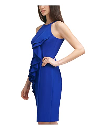 Vince Camuto Women's Halter Neck Laguna Crepe Body Con Dress Blue Size 8