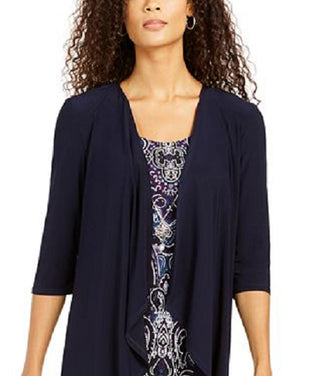 R & M Richards Women's Printed Necklace Dress & Draped Jacket Blue Size 10 Petite