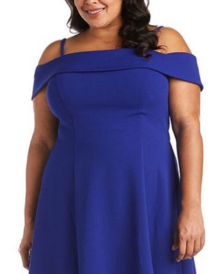 Morgan & Company Women's Cold Shoulder Mini Fit & Flare Dress Blue Size 14W
