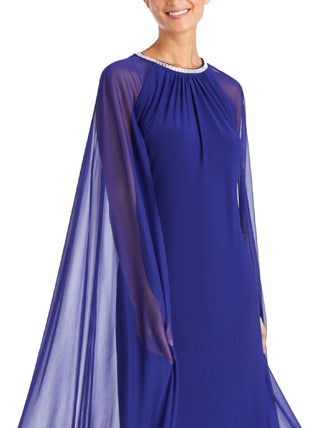 R & M Richards Women's Embellished Cape Dress Blue Size 14