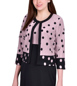 NY Collection Women's 3/4 Sleeve Two Piece Dress Set Black Size 10