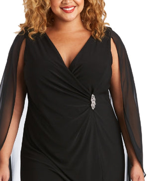 R & M Richards Women's Embellished Chiffon Cape Dress Black Size 16W