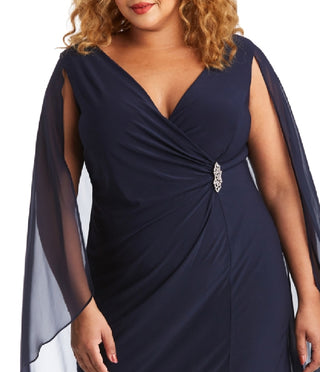 R & M Richards Women's Embellished Chiffon Cape Dress Blue Size 20W