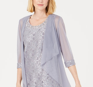 R & M Richards Women's Embellished Lace Sheath Dress & Jacket Gray Size 12