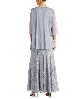 R & M Richards Women's Beaded Dress & Flyaway Jacket Gray Size 16
