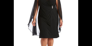 R & M Richards Women's Embellished Chiffon Cape Dress Black Size 22W