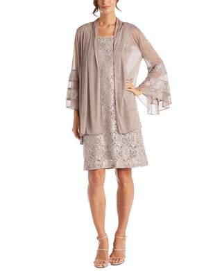 R & M Richards Women's Beaded Dress & Flyaway Jacket Gray Size 8