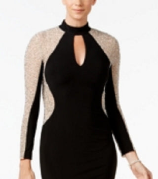 XSCAPE Women's Studded Illusion Choker Sheath Dress Black Size 8