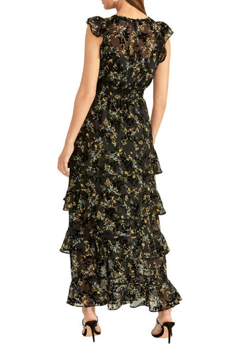 Donna Ricco Women's Metallic Flutter Sleeve Maxi Dress Black Size 14