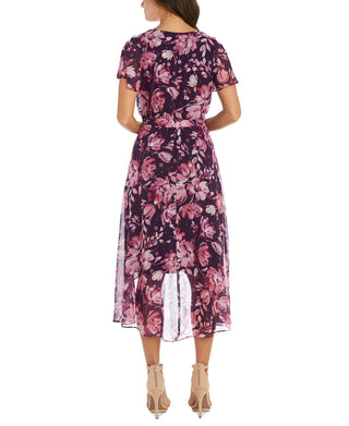 R & M Richards Women's Flutter Sleeve Faux Wrap Dress Purple Size 16W