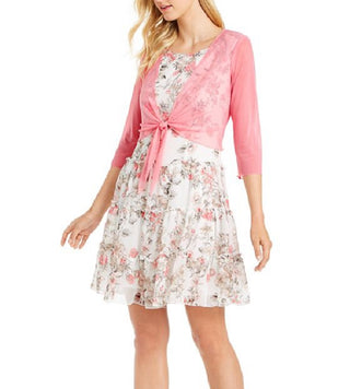 Connected Women's Mesh Jacket & Floral Print Fit & Flare Dress White Size 6Petite