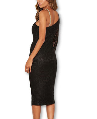 AX Paris Women's Lace One Shoulder Chain Detail Dress Black Size 13