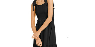 INC International Concepts Women's Smocked Bodice Peplum Midi Dress Black Size X-Small