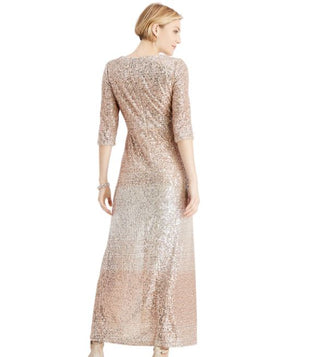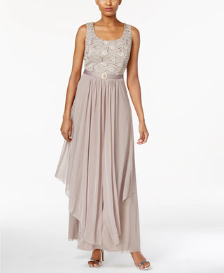 R & M Richards Women's Sequined Gown Beige Size 12 Petite