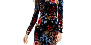 Vince Camuto Women's Floral Long Sleeve Stretch Velvet Dress Blue Size 10