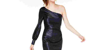 NW Nightway Women's Metallic Ruched Cocktail Dress Blue Size 12