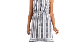 Style & Co Women's Striped Jacquard MIDI Dress Blue Size Small