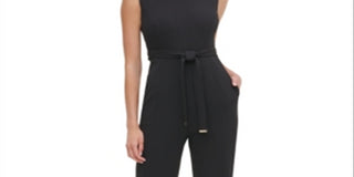 Tommy Hilfiger Women's Belted Zippered Sleeveless Mock Wide Leg Party Jumpsuit Black Size 10
