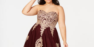 Say Yes To The Prom Women's Trendy Plus Size Embroidered Strapless Gown Dark Purple Size 14W