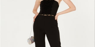 City Studios Women's Lace Solid Sleeveless Halter Skinny Jumpsuit Black Size 1