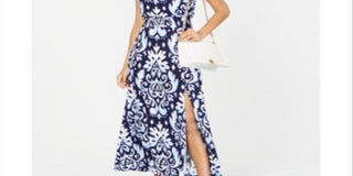 INC International Concepts Women's Printed Maxi Dress Blue Size Petite Small