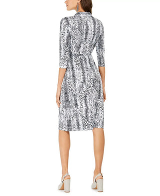 NY Collection Women's Animal Print Wrap Shirtdress White Combo Size Petite XL