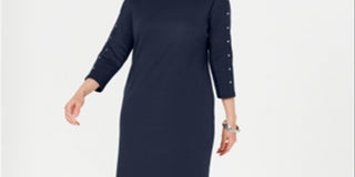 Karen Scott Women's Studded 3/4 Sleeve Boat Neck Above the Knee Shift Dress Blue Size X-Small