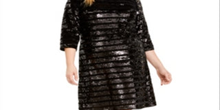 INC International Concepts Women's Plus Sequined Above Knee Sheath Dress Black Size 1X