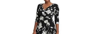 Ralph Lauren Women's Cream Floral Surplice Fit & Flare MIDI Dress Black Size 6