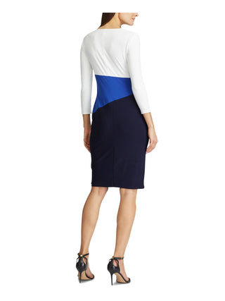 Ralph Lauren Women's Color Block Short Sleeve Jewel Neck Above the Knee Body Con Dress Blue Size 18