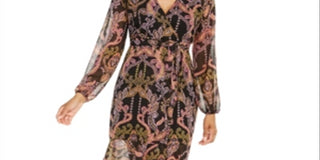 Thalia Sodi Women's Printed Surplice Peasant Dress Black Size Large